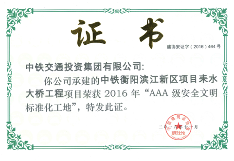 耒水大桥工程荣获AAA级安全文明标准化工地,全国现场管理星级评价四星级现场。