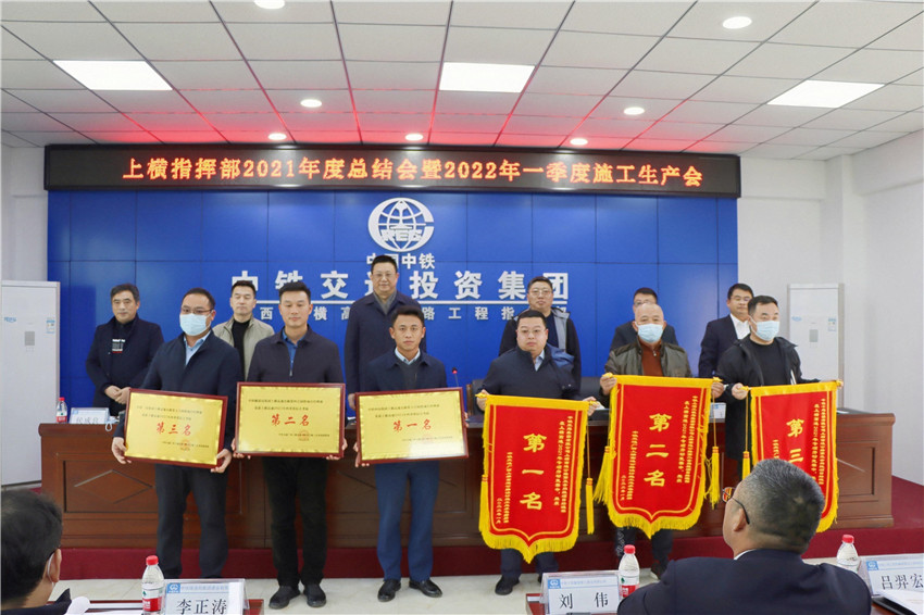 当天下午,谭世俊出席上横指挥部2021年度总结会暨2022年一季度施工生产会,并为“决战决胜四季度”专项劳动竞赛先进单位和综合考评先进单位颁发奖牌。集团公司副总经理刘进友,集团公司生产运营管理部、综合办公室负责人参加会议。