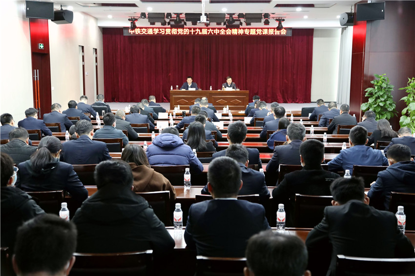 1月10日下午,中铁交通党委学习贯彻党的十九届六中全会精神专题党课报告会在邕召开,集团公司党委书记、董事长谭世俊以《抢抓机遇谋突破 凝心聚力要效益 加快推进中铁交通差异化专业化实体化发展》为题作了专题党课报告,集团公司党委副书记、总经理李建光主持会议,集团公司其他领导班子成员参加报告会。