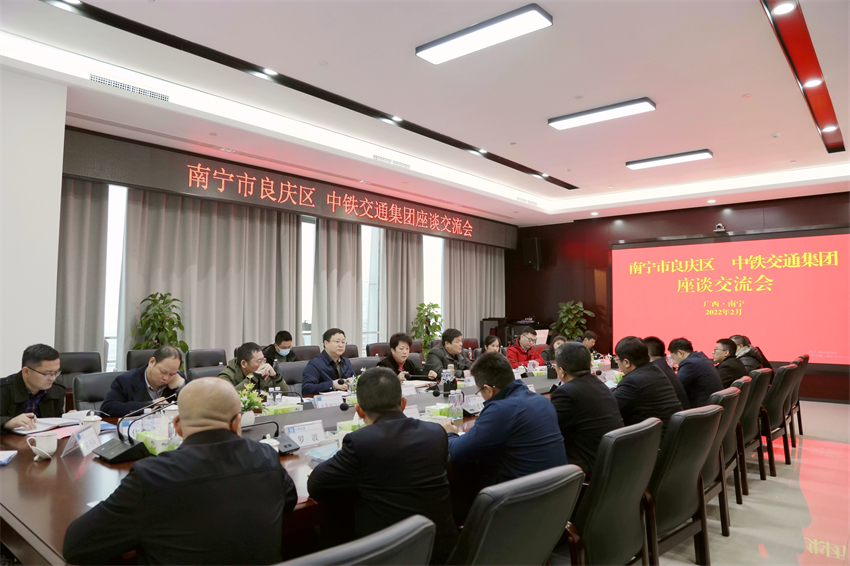 近日,南宁市良庆区党委书记陆广平带队到中铁交通走访交流。城区党委副书记、区长李冉,城区党委常委、副区长魏金陪同,集团公司党委副书记、总经理李建光及集团公司领导李晓鹏、李云峰、刘进友参加座谈交流。