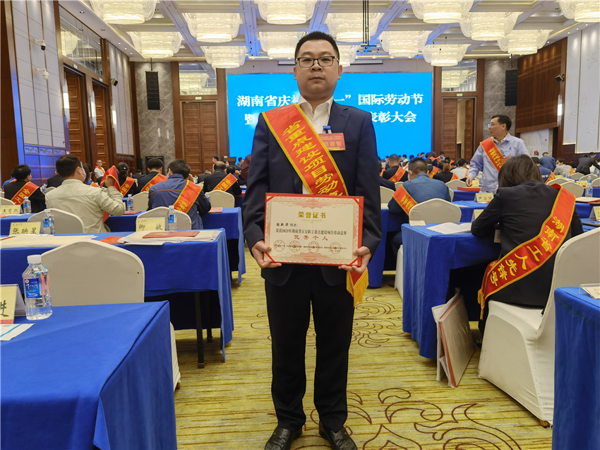 4月29日上午9时,湖南省庆祝“五一”国际劳动节暨先进集体先进个人表彰大会在长沙召开。炉慈桑龙项目共摘得5项“助力十四五  建设新高地”湖南省百万职工重点建设项目劳动竞赛荣誉:炉慈指挥部、桑龙TJ5标项目部荣获先进班组称号,项目公司陶新华、刘芳和炉慈TJ1标项目部董李军荣获先进个人称号。