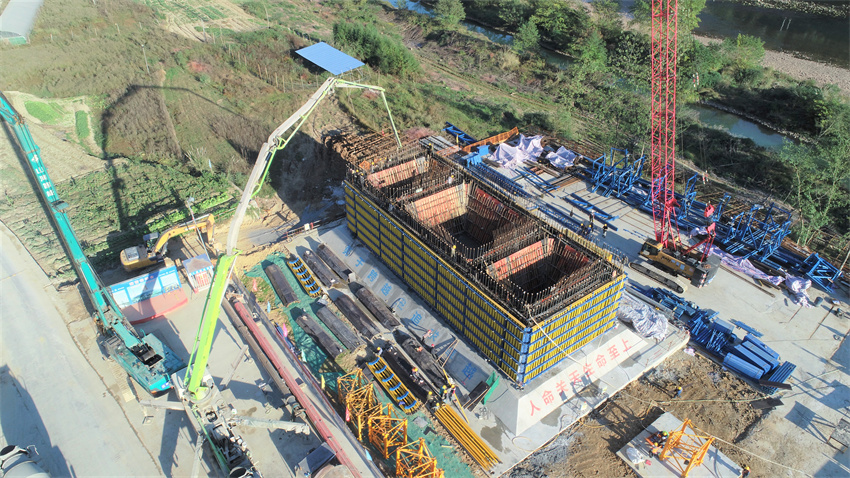 同日11时,炉慈高速公路项目长潭河溇水特大桥成功完成8#墩第一节塔墩施工,标志着长潭河溇水特大桥主塔施工又迈上了一个新台阶,为长潭河溇水特大桥主塔塔墩施工奠定了坚实基础。