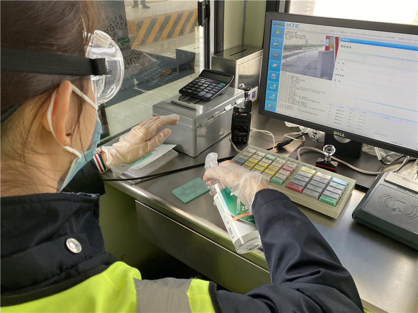 面对春运期间车流大幅增加、疫情防控形势严峻等情况,绥延项目绷紧“安全保通”和“疫情防控”两根弦,及时对公共区域、CPC卡通行介质及现金进行消毒,加强所属站所进出管控,全力以赴打响春运保畅战。