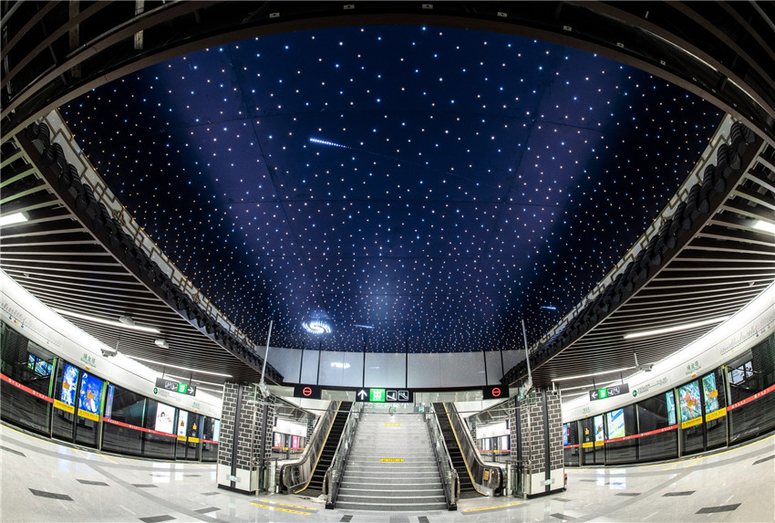 ▲观洲站:桃花元素象征城市商贸的繁荣和旺盛