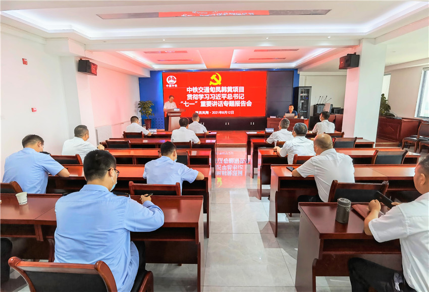 旬凤韩黄项目举行学习贯彻习近平总书记“七一”重要讲话精神专题报告会,邀请宝鸡市委党校副教授童力冲作报告。项目领导班子成员、全体党员、各部门负责人及收费员代表,共计27人聆听专题报告。