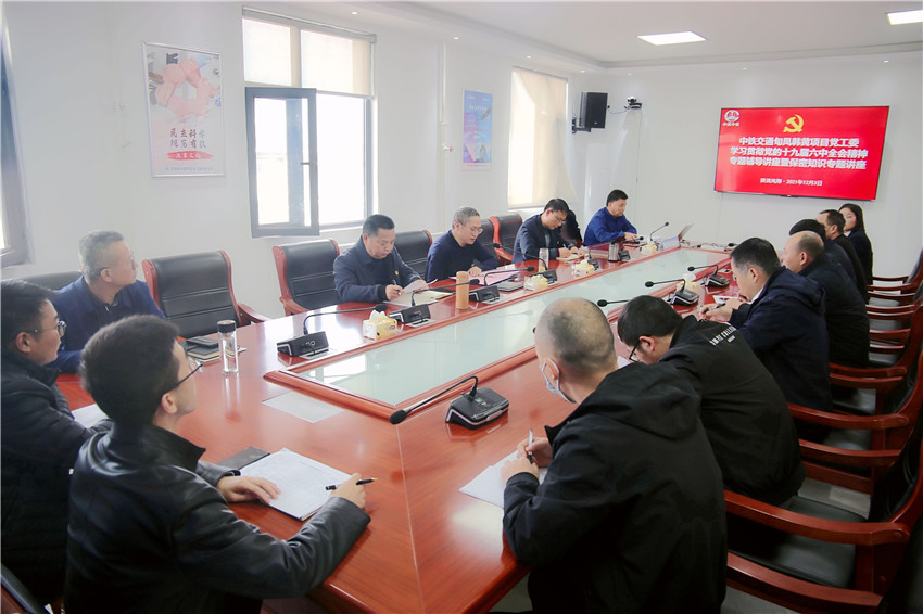 旬凤韩黄项目组织开展学习贯彻党的十九届六中全会精神专题辅导报告,邀请宝鸡市委党校副教授童力冲作专题讲座,旬凤韩黄项目党员领导干部职工现场聆听讲座。
