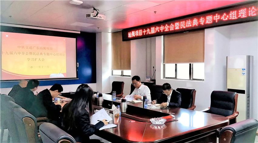 汕揭项目召开专题会议,组织党工委理论学习中心组成员及党支部全体党员集中学习党的十九届六中全会精神。