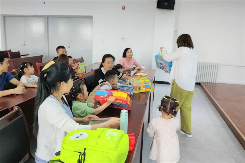 ▲发放益智玩具