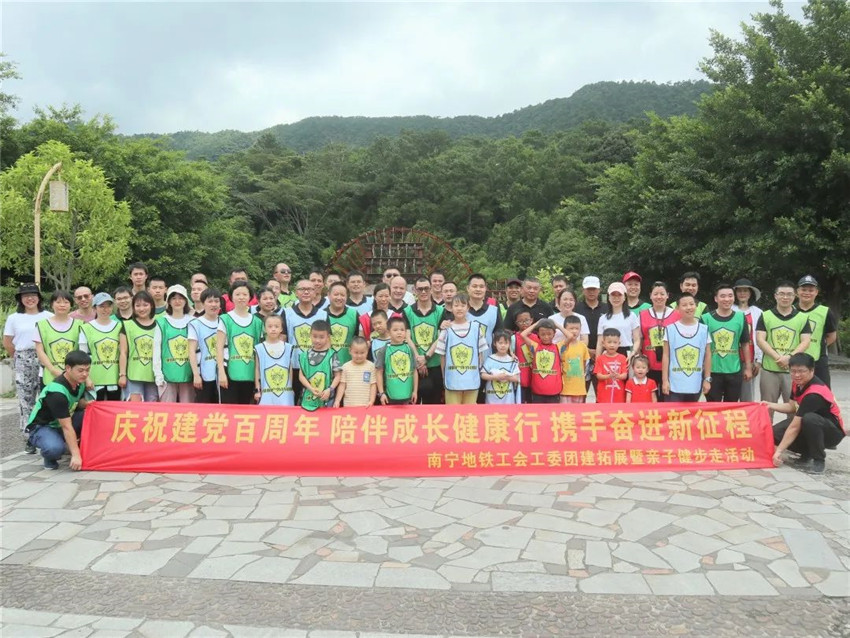 5月29日,南宁地铁5号线工会工委在八寨沟组织开展了“庆建党百周年、陪伴成长健康行、携手奋进新征程”团建拓展暨亲子健步走活动,南宁地铁、天地置业、南宁项目职工家属及子女,共计80余人参加。