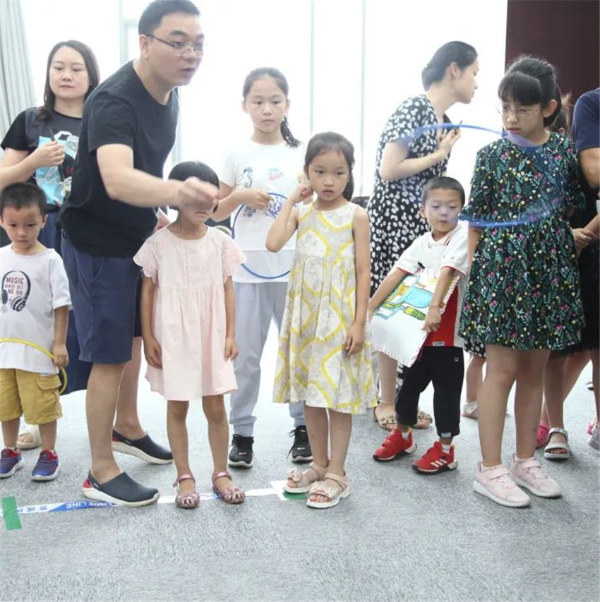 最后,职工家属与小朋友们一起在公司办公大楼开展了游园活动,他们在套圈圈、扔飞镖过程中收获了满满奖品。