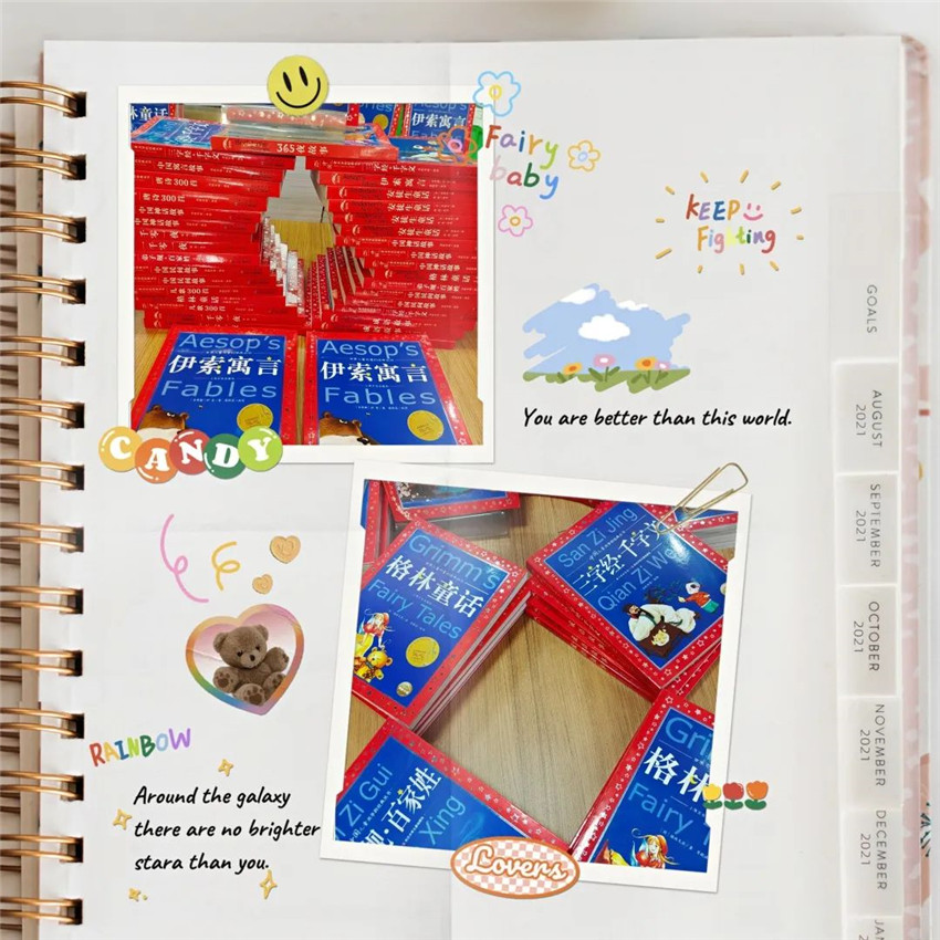 ▲发放红色书籍和儿童安全教育书籍